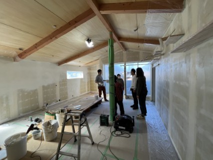 平針の家 壁塗り セルフビルド 投稿日: 2024 年 4 月 10 日2026 年 2 月 5 日 投稿者: admin 平針の家 いよいよ壁塗りです。 施主さんと セルフペイントしていきます。 2階部分も 高所は工務店さんが手伝ってくれます。 塗りやすいところは 施主さんにて 良い家になりそうです。 楽しみですね。